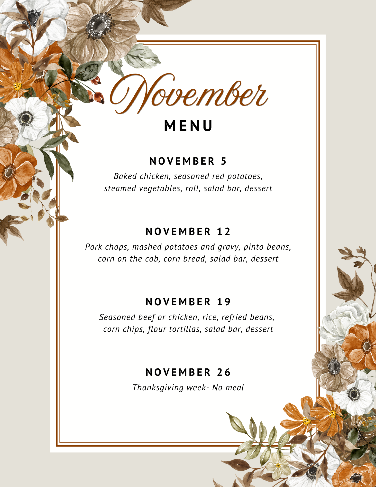 For Reservations for Wednesday Night Meals, please email Susie Stephens.